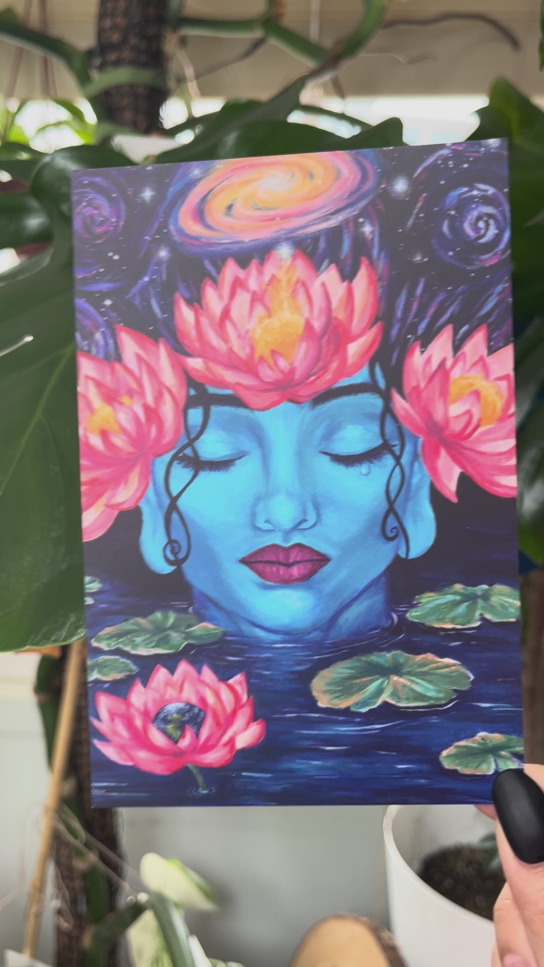 Postcard featuring my original painting, "Gaia," widely known as Mother Earth. The artwork on the front is printed with water-based inks and has a gorgeous matte finish, while the back is fully writeable so you can stick a stamp on it and send it in the mail 💌