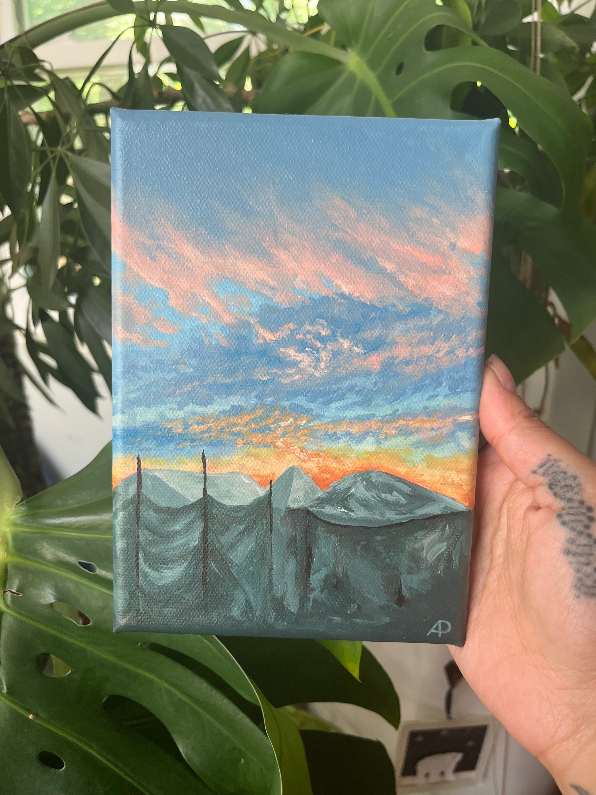 Sunset Over Dyana's Tent, 2024, acrylic on canvas.